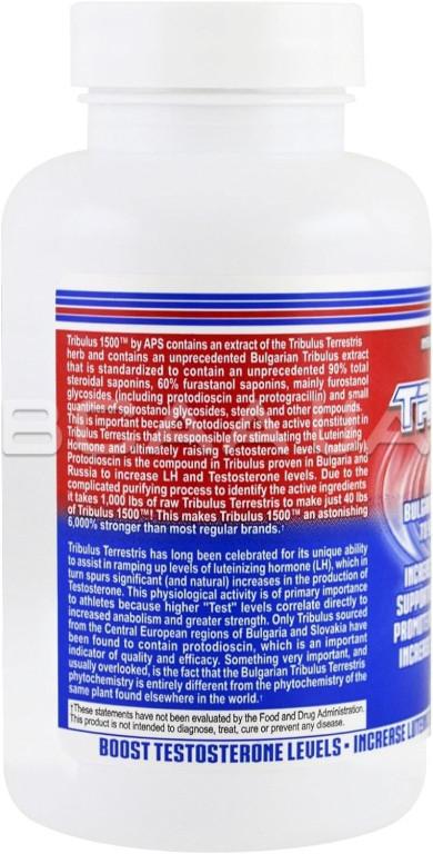 - Tribulus 1500™ от APS содержит экстракт травы Tribulus terrestris (надземные части – листья и стебли) и болгарский экстракт Tribulus, который стандартизирован и содержит беспрецедентное количество стероидных сапонинов – 90%, 60% фурастаноловых сапонинов, в основном фуростаноловые гликозиды (включая протодиосцин и протограциллин) и небольшие количества спиростаноловых гликозидов, стеринов и других соединений. К сожалению, 99% всех продуктов на рынке США практически не содержат протодиосцина! Это важно, поскольку протодиосцин является активным компонентом трибулус террестрис, который отвечает за стимуляцию лютеинизирующего гормона и за повышение уровня тестостерона (естественным путем). Протодиосцин — это соединение трибулуса, которое, повышает уровень ЛГ (лютеинизирующего гормона) и тестостерона. Из-за сложного процесса очистки для определения активных ингредиентов требуется 1000 фунтов сырого трибулуса террестриса, чтобы получить всего 40 фунтов Tribulus 1500™!