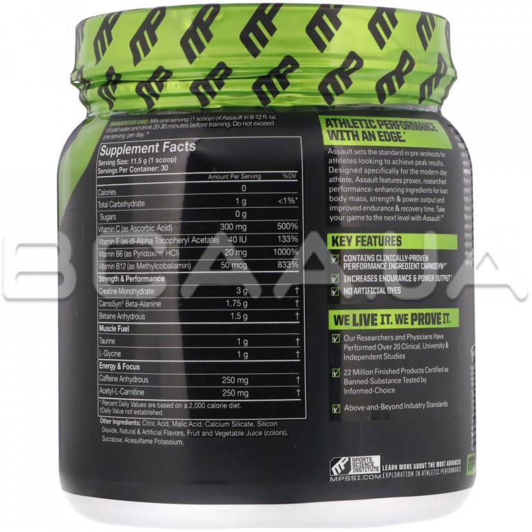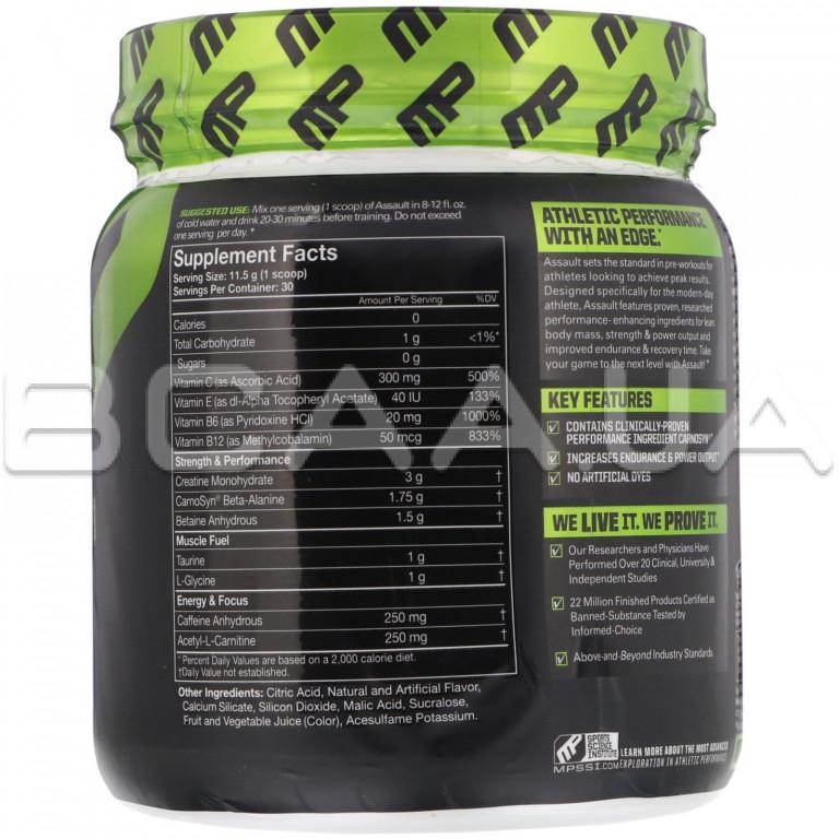 Описание Muscle Pharm Assault Energy + Strength, Pre-Workout, 345 g
