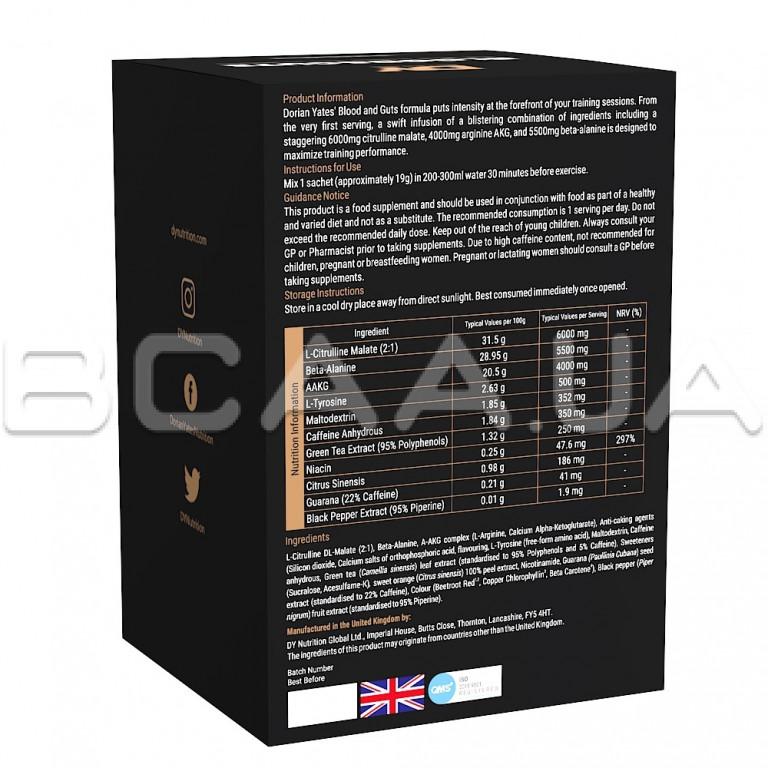 - DY Blood & Guts - содержит мощные дозировки рабочих компонентов, включая цитруллин малат, аргинин AKG и бета-аланин для огромной мышечной накачки, непревзойденной выносливости и феноменальной силы.