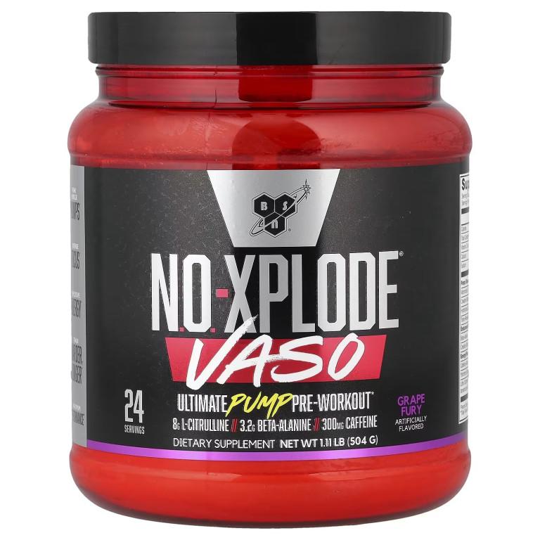 - BSN N.O.-Xplode VASO — это предтренировочный комплекс в порошке, разработанный для использования перед тренировками. Продукт создан для людей, стремящихся получить максимальную отдачу от тренировочного процесса за счёт комплексного состава.