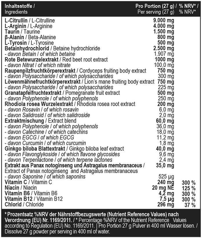 Предтренировочная формула для когнитивных функций и мышечного пампинга.