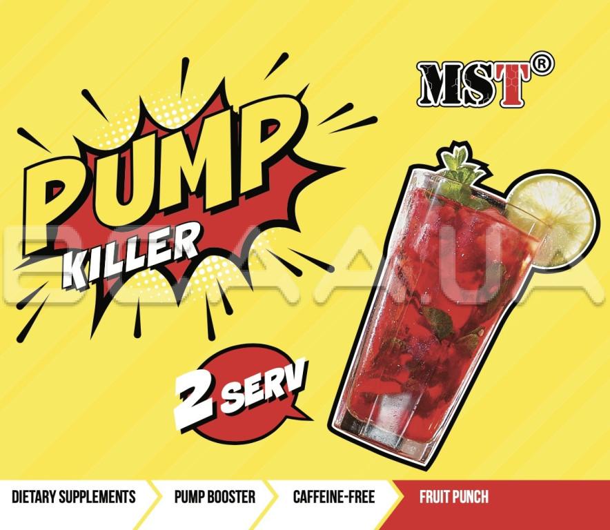 - MST, Pump Killer — это не содержащая кофеина предтренировочная формула, разработанная для максимального притока крови, накачки мышц и интенсивности тренировок — без чрезмерной стимуляции нервной системы. Идеально подходит для вечерних тренировок или сочетания с другими добавками.