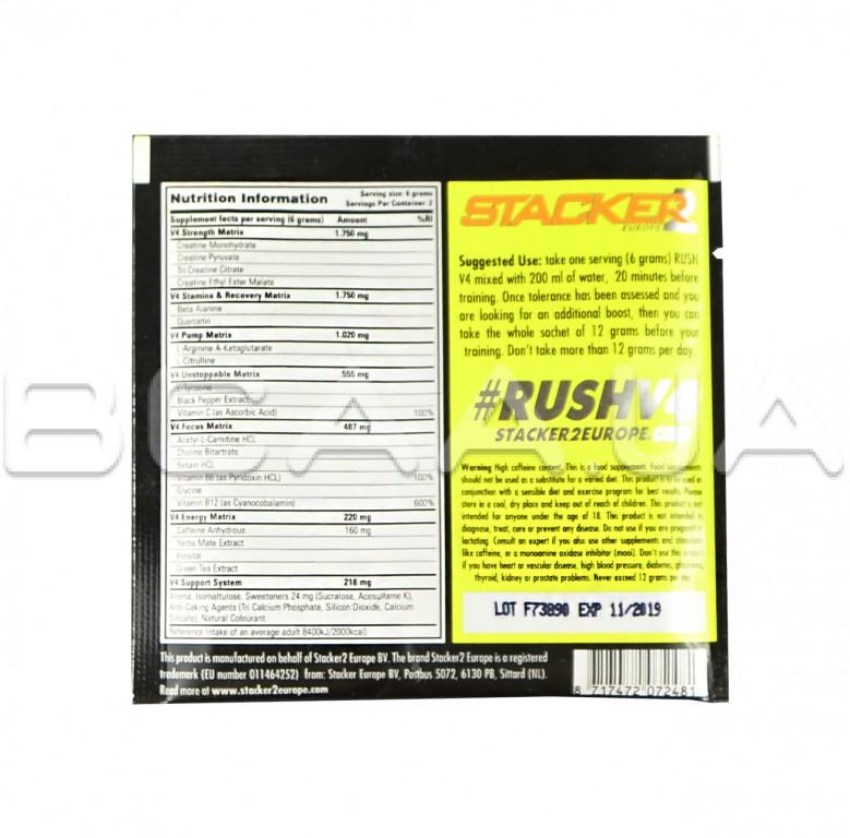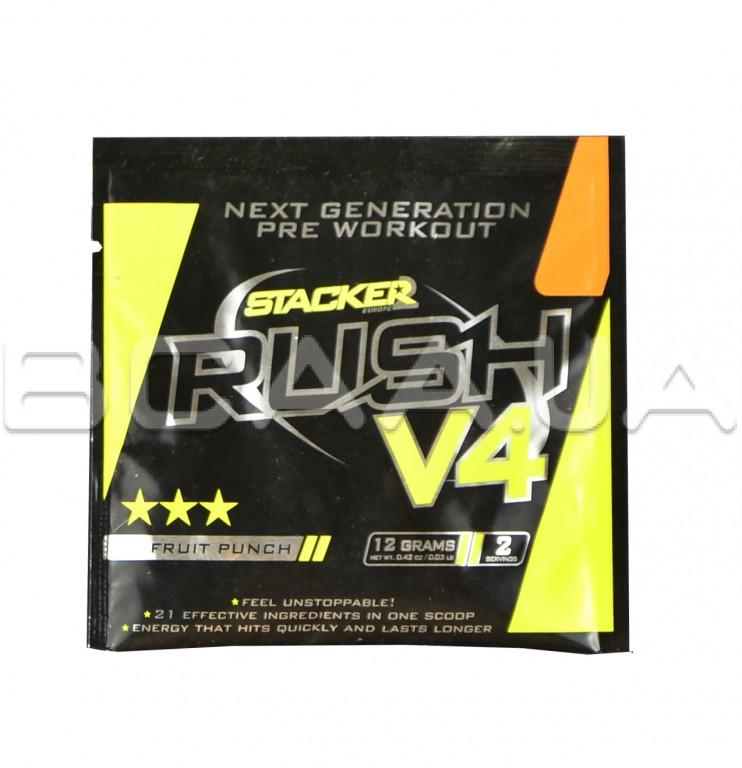 - RUSH V4 - разработан как экстремальный и эффективный продукт для тренировки. Содержит экстракты, увеличивающие производительность, и лучшие комбинации ингредиентов, которые увеличивают энергию, силу и фокус до максимума.