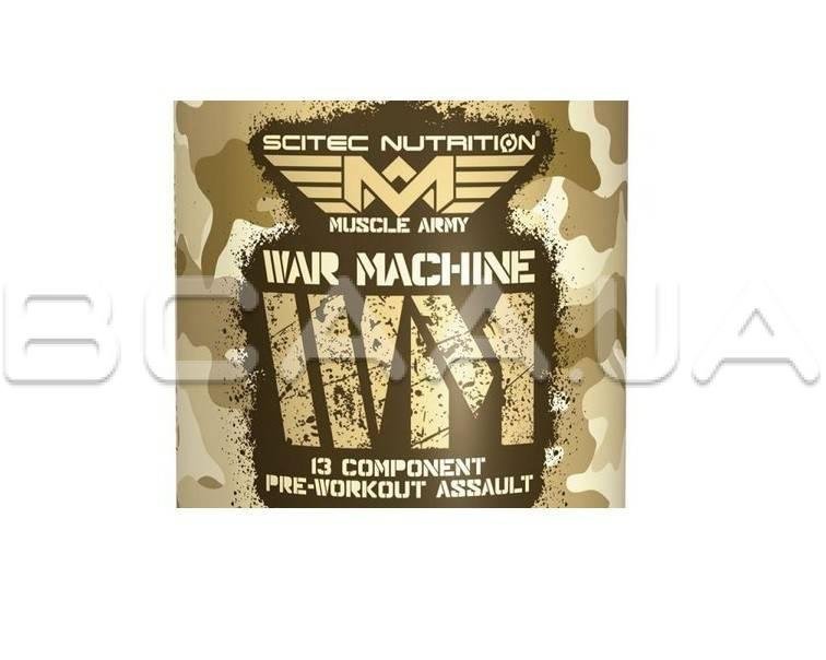 - Scitec Nutrition War Machine - это целый ряд обязательных видов “оружия”, включая L-аргинин (предшественник окисла азота NO), альфа-кетоглутарат, мощную дозу кофеина, бета-аланин, ацетил-L-карнитин, экстракт померанца (источник синефрина) и Bioperine®. Формула не содержит сахара и аспартама.