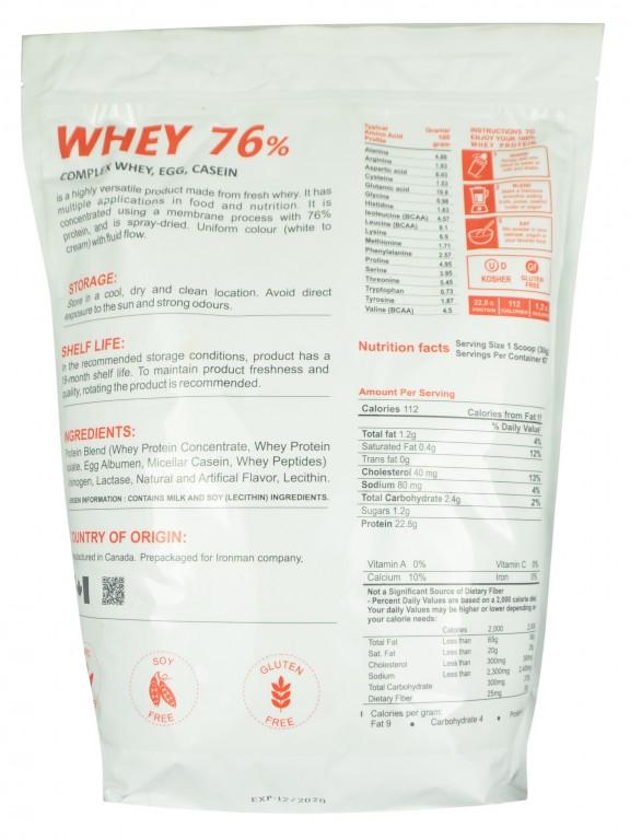 Complex 76% Whey - мощная смесь протеинов, от известной канадской компании Saputo. Добавка обеспечивает подпитку мышц, высококачественным белком и защищает мышечные волокна от разрушения. Сывороточный и яичный протеины, вместе с казеином, медленно и постепенно усваевается, за счет чего обеспечивают мышцы энергией на длительное время. Продукт завоевал популярность на рынке спортивного питания и активно используется спортсменами, вне зависимости от уровня физической подготовки. Так как инновационная форма смеси, обеспечивает приятный вкус и высокую эффективность.