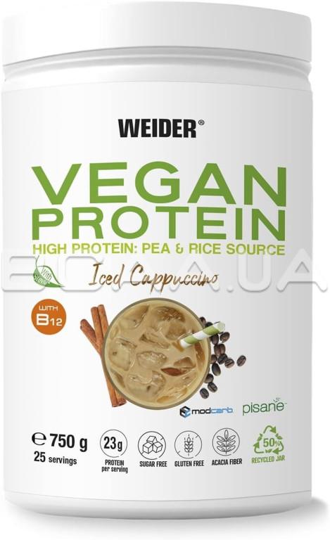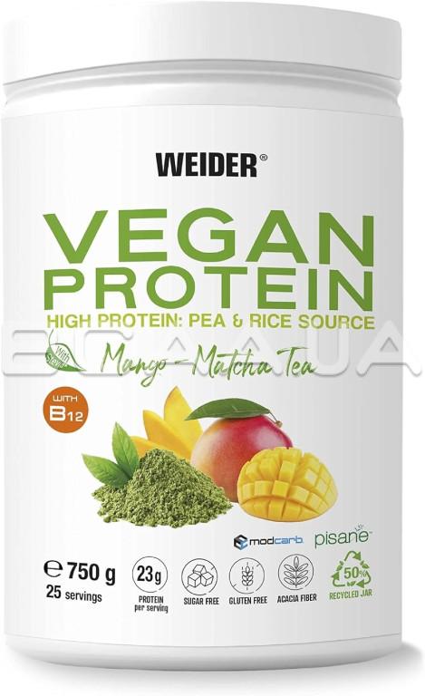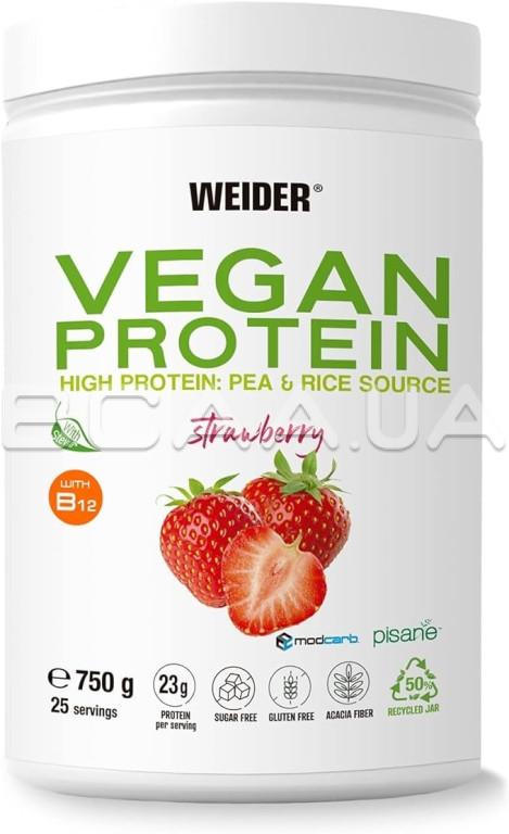 - Weider, Vegan Protein - высококачественный веганский протеин основан на продуманной комбинации горохового и рисового протеинов, имеющей полный аминокислотный профиль. В качестве источника горохового белка используется только высококачественное фирменное сырье Pisane®, что обеспечивает максимальное качество. Высококачественная формула также содержит комплекс Dynamic Fruits & Greens™, который содержит ценные фитонутриенты. Этот протеин не содержит гексанов и глютена — идеально подходит для веганов или физически активных людей, соблюдающих растительную диету.