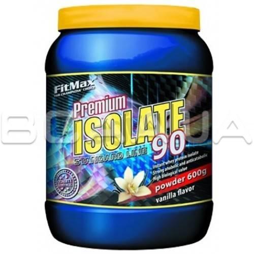 FitMax Isolate 90 Premium 600 грамм, продукт питания, поддерживающий восстановление организма после физической нагрузки, способствующий увеличению синтеза мышечного протеина. Продукт содержит изолят сывороточного протеина, характеризующийся высокой биологической ценностью, высоким содержанием белка. Анаболическая сила продукта - соответствующий комплекс аминокислот, скорость и степень проникновения в организм.