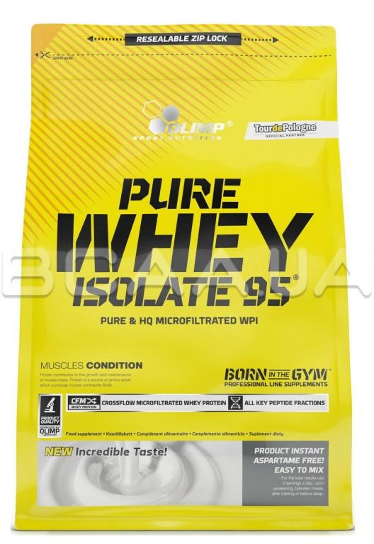 - Olimp Labs Pure Whey Isolate 95 - получен методом ионного обмена, что позволяет получить биологически активный белок, содержащий бета-лактоглобулин, альфа лактоальбумин, иммуноглобулины, сывороточный альбумин, лактоферрин, лактотрансферин, церулоплазмин, протеазын и пептоны. Не денатурированные белки содержат полный спектр всех заменимых и незаменимых аминокислот, а также аминокислот с разветвленной боковой цепочкой BCAA.