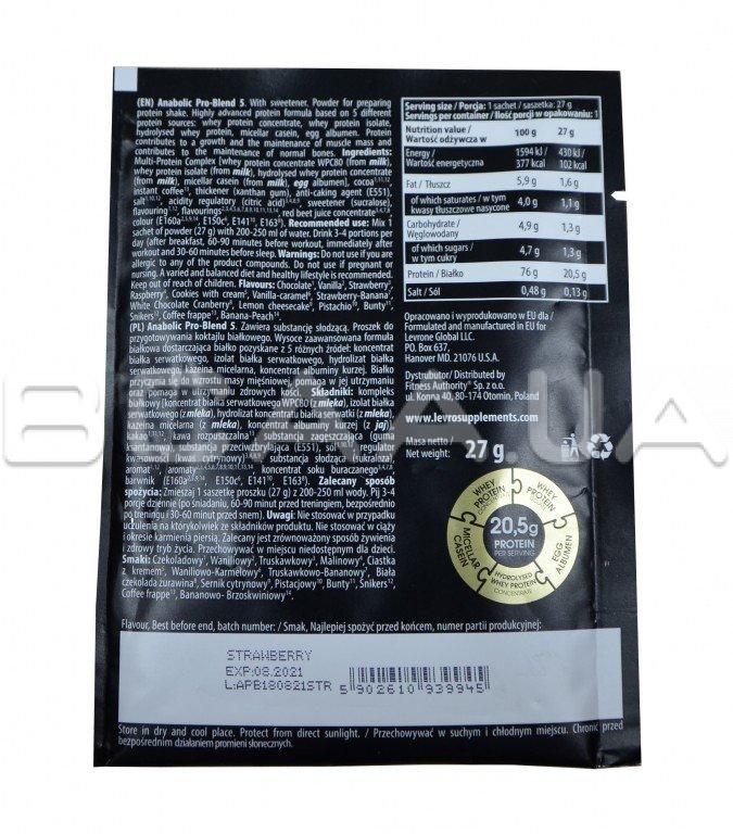 - Anabolic Pro-Bland 5 - высококонцентрированная белковая смесь на основе 5 различных источников белка: концентрат сывороточного белка, изолят сывороточного белка, гидролизованный сывороточный белок, мицеллярный казеин, яичный белок. Белок способствует росту и поддержанию мышечной массы и способствует поддержанию здоровья костей.