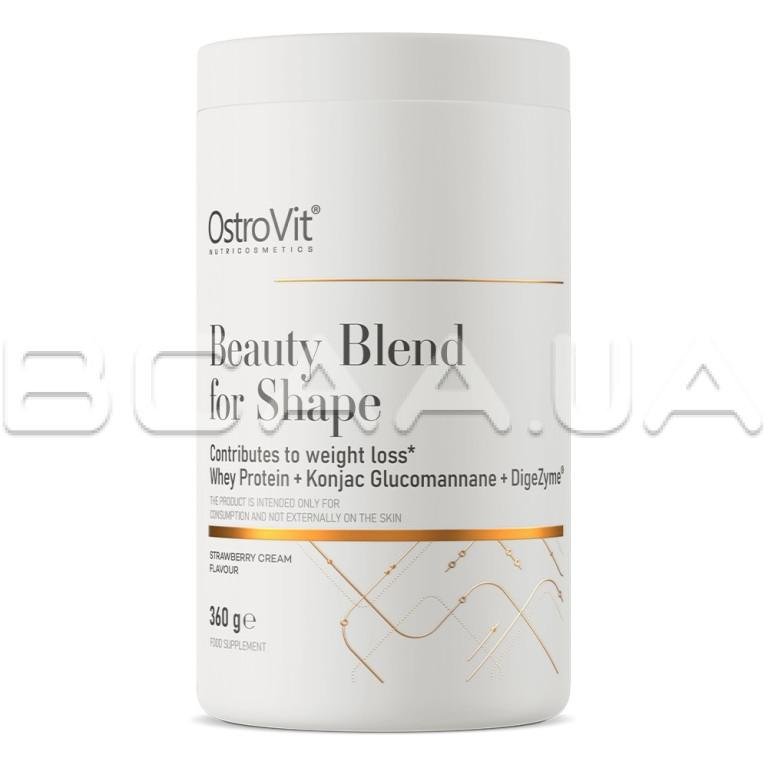 - Ostrovit, Beauty Blend For Shape — это высококачественная пищевая добавка, которая является источником концентрата сывороточного белка из молока, а также конжакового глюкоманнана и мультиферментного комплекса DigeZyme®.