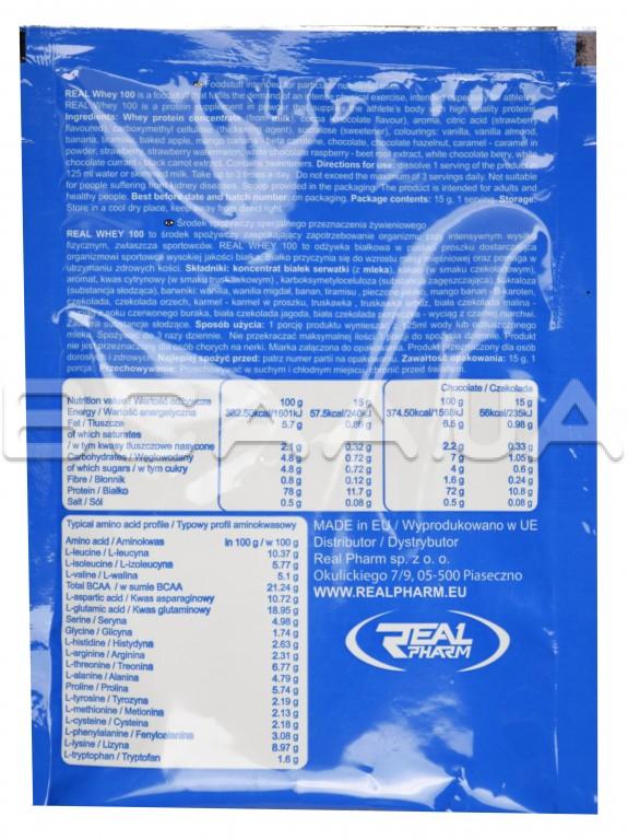- Real Whey 100 - чистый протеин концентрат белка молочной сыворотки, который характеризуется высокой биологической ценность, быстрым усвоением, а также высоким содержанием необходимых для организма аминокислот BCAA.