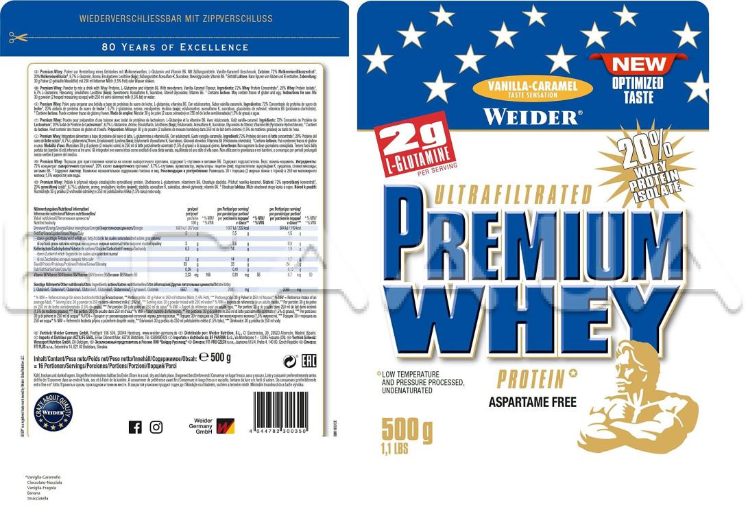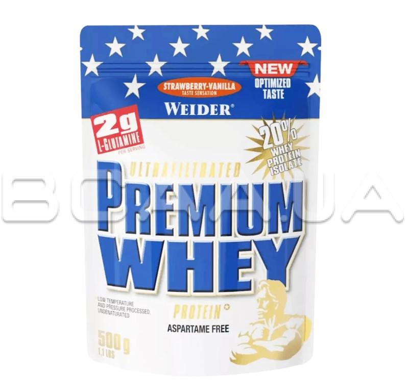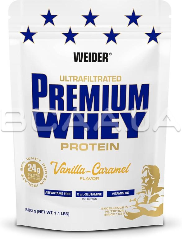 - Weider, Premium Whey Protein представляет собой смесь концентрата и изолята сывороточного белка с очень низким содержанием углеводов и жиров. Он также содержит высококачественный L-глютамин и ценный витамин B6, который способствует нормальному белковому обмену. Этот протеин можно использовать не только для протеиновых коктейлей, но и в качестве ингредиента для приготовления выпечки.