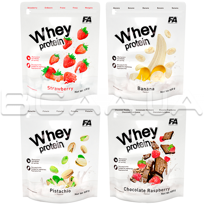 - FA Whey Protein - качественнейшая сыворотка, необходимая для поддержания мышечных волокон и предотвращения их распада и катаболизма.Продукт богат аминнокислотами ВСАА и является действенным и эффективным белковым продуктом. Важность данного продукта заключается в присутствии большого количества концентрата сывороточного протеина премиум-качества. Люди, которые активно занимаются физическими нагрузками и упражнениями в спортзале, далеко не понаслышке знают, какую важную роль играет своевременное поступление в организм необходимого количества белков и аминокислот. Регулярное потребление предлагаемого вашему вниманию препарата спортивного питания поддерживает необходимый положительный азотный баланс, позволяет достигнуть максимально возможного анаболического отклика в организме, а также максимально быстро и оперативно восстановить физические силы мускулатуры тела.