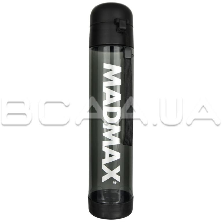 - Пляшка циліндричної форми з кришкою, що щільно закривається. Зручний носик для пиття. Вгорі пляшки прикріплений шнурок носіння. Пляшка виготовлена із прозорого полікарбонату. Збоку нанесено логотип з написом MadMax. Основа та кришка зроблені з матового нешкідливого пластику.