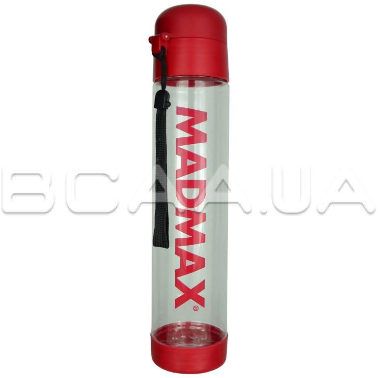 - Пляшка циліндричної форми з кришкою, що щільно закривається. Зручний носик для пиття. Вгорі пляшки прикріплений шнурок носіння. Пляшка виготовлена із прозорого полікарбонату. Збоку нанесено логотип з написом MadMax. Основа та кришка зроблені з матового нешкідливого пластику.