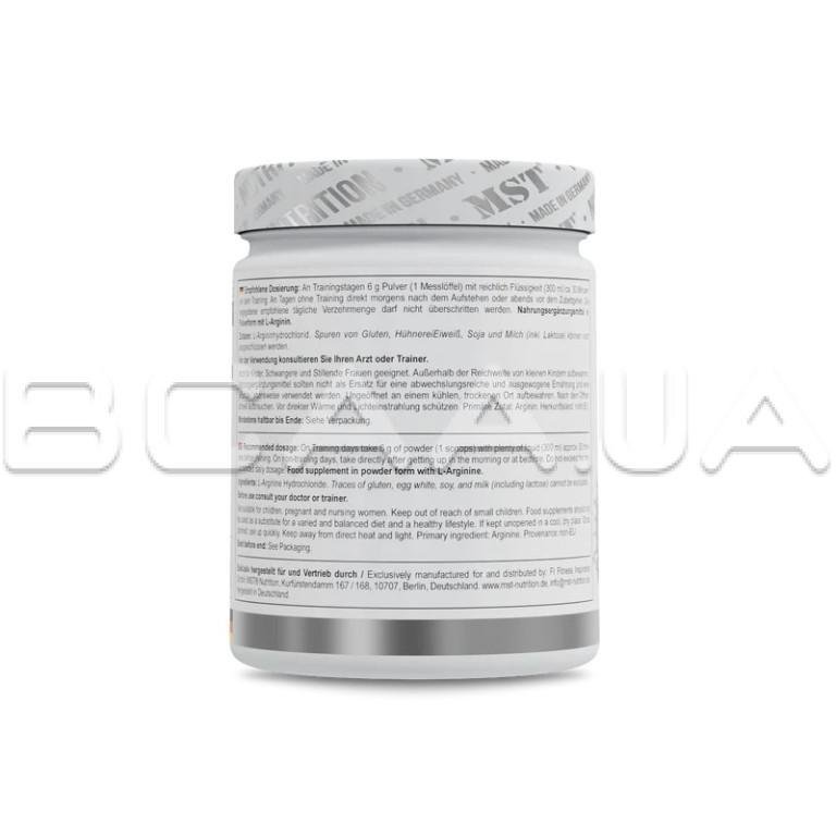 - MST, Arginine HCL містить 100% чистий гідрохлорид L-аргініну, потужну амінокислотну добавку, призначену для покращення спортивних результатів, підтримки здоров'я серцево-судинної системи та сприяння ефективному відновленню м'язів. Відомий своєю роллю у підвищенні вироблення оксиду азоту, L-аргінін допомагає покращити кровотік, що робить його фаворитом серед спортсменів, бодібілдерів та активних людей.