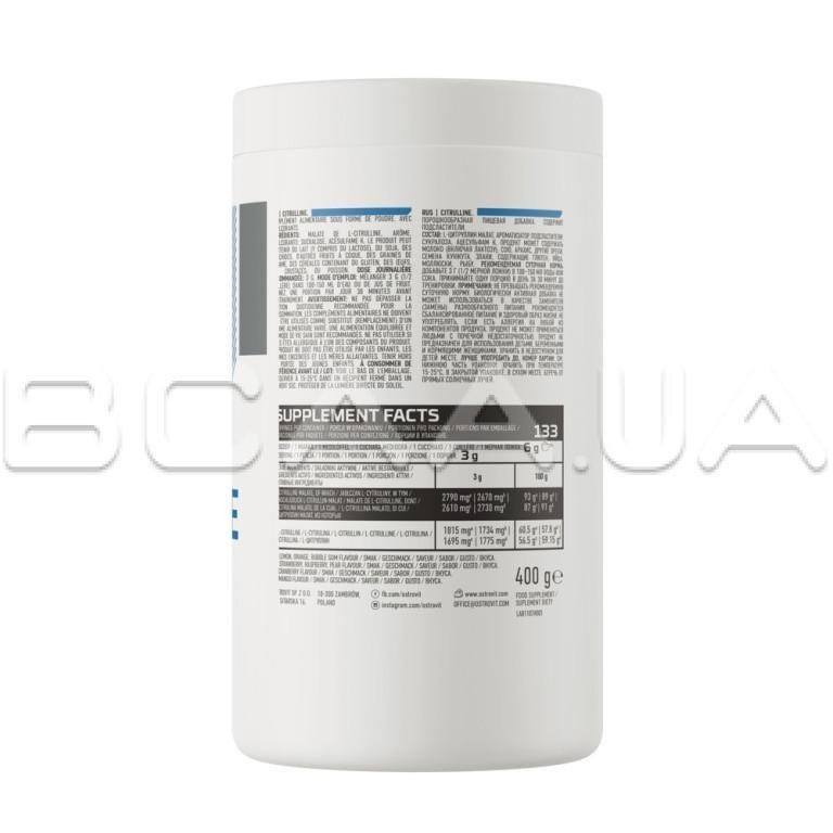Інгредієнти: L-цитрулін малат, ароматизатор, підсолоджувачі: сукралоза, ацесульфам.