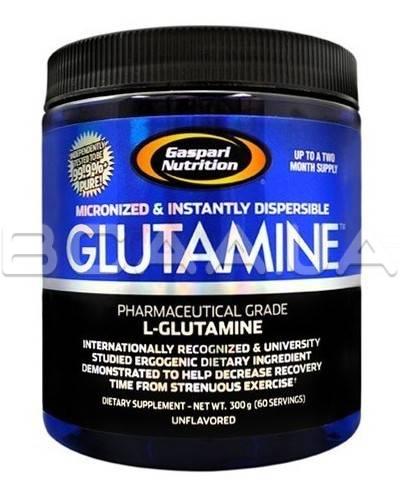Вживання Gaspari GLUTAMINE (глутаміну) здоровими людьми призводить до покращення композиції тіла і підвищення спортивних показників. У дослідженні, які порівнювали ефекти глютаміна і плацебо (мальтодекстрин) на вагу в одному максимальному присяді, піковий момент розгинання ноги в колінному суглобі, суху масу тіла і розщеплення потеіна, значення показали рівне поліпшення в обох групах. Додатково до цього випробовувані в плацебо контрольованому дослідженні, отримували високу одноразову дозу глютаміна в 0,3 грама на кілограм ваги тіла (це приблизно 20 грам на 70кг ваги) за 1 годину до тренування, не показали підвищення робочих в роботі з обтяженнями. Крім того, твердження, що глютамін здатний гальмувати розщеплення м'язового протеїну і покращувати імунну функцію, сильно прикрашені. Потрібні дуже високі (більше 20 грамів в день) дози і постійний прийом, щоб подібні ефекти дійсності проявилися.