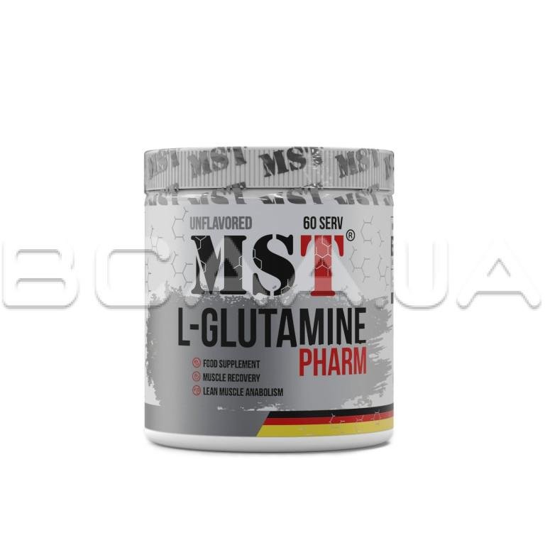 - MST, L-Glutamine - це порошкова харчова добавка, розроблена для підтримки відновлення м'язів, імунної функції та здоров'я кишечника. L-глютамін - умовно незамінна амінокислота, хоча організм може її виробляти, додатковий прийом може бути корисним у періоди інтенсивного фізичного стресу або хвороби.
