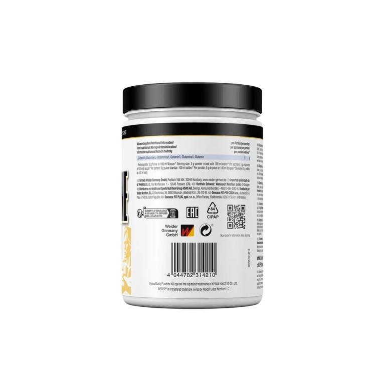 - Weider, L-Glutamine - це чиста, високоякісна амінокислотна добавка, розроблена для підтримки відновлення м'язів, імунної функції та загальної ефективності тренувань. L-глутамін - найбільш поширена амінокислота в м'язовій тканині, яка відіграє ключову роль у періоди інтенсивних фізичних навантажень, таких як важкі тренування або обмеження калорій. Цей порошок, що швидко засвоюється, допомагає підтримувати м'язову масу, прискорювати відновлення і підтримувати загальне самопочуття.