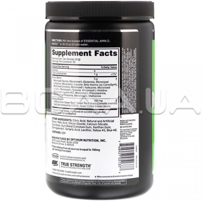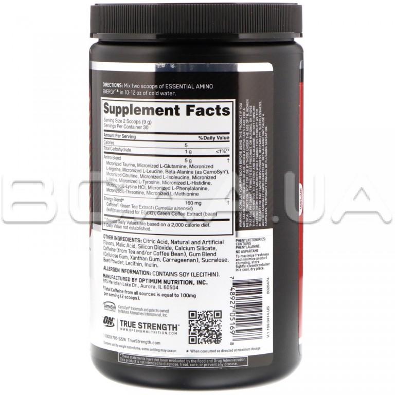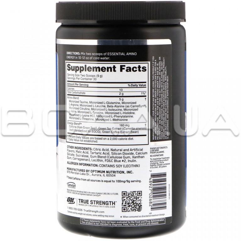 Essential Amino Energy - біодобавка від фірми Optimum Nutrition, створена, щоб швидко надати безцінну підтримку вашим м'язам. В основі якої лежать незамінні амінокислоти, та речовини, необхідні для відновлення та побудови нових м'язових волокон.