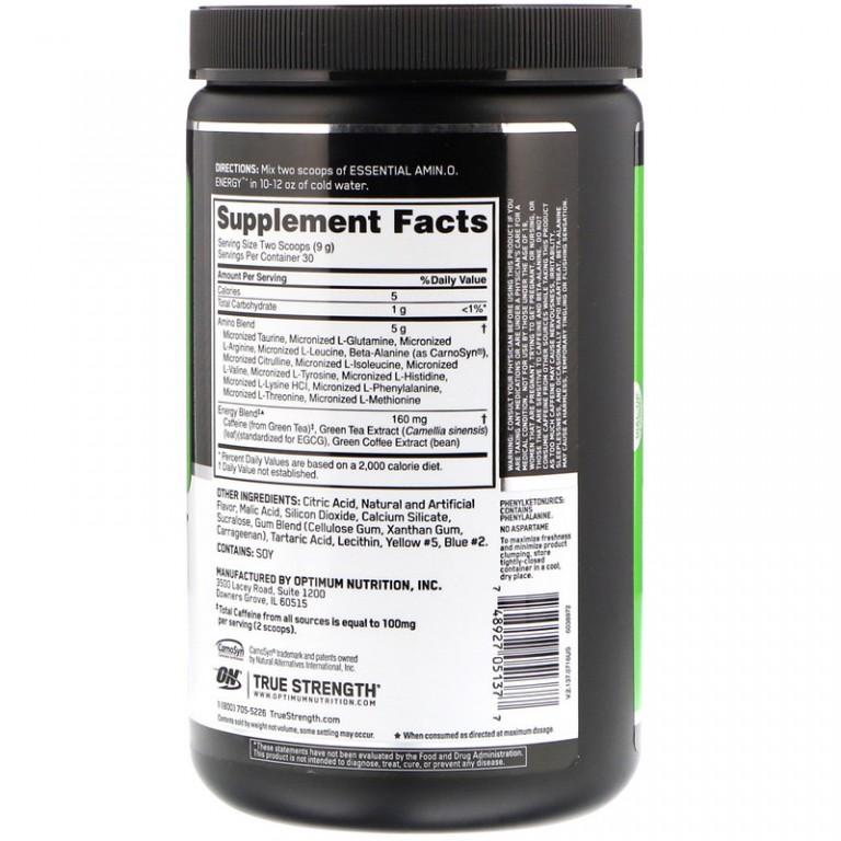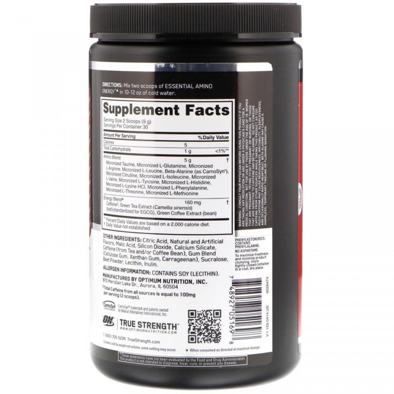 Essential Amino Energy - биодобавка от фирмы Optimum Nutrition, создана быстро оказать бесценную поддержку вашим мышцам. Основой которой являются незаменимые аминокислоты, и вещества, необходимые для восстановления и построения новых мышечных волокон.