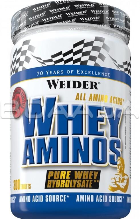 - Weider Whey Aminos - амінокислотний комплекс в основі якого лежить широкий спектр амінокислот видобутих із гідролізату сироваткового протеїну і гідролізату желатину. Прийом цього комплексу дозволить вашому організму заповнити всі амінокислотні прогалини і потреби вашої мускулатури. Якщо ви хочете швидко набрати суху масу і при цьому не витрачати час на приготування коктейлів - саме час спробувати цей продукт.