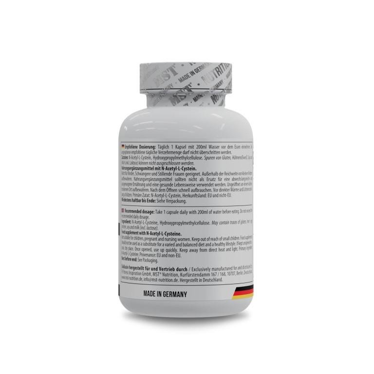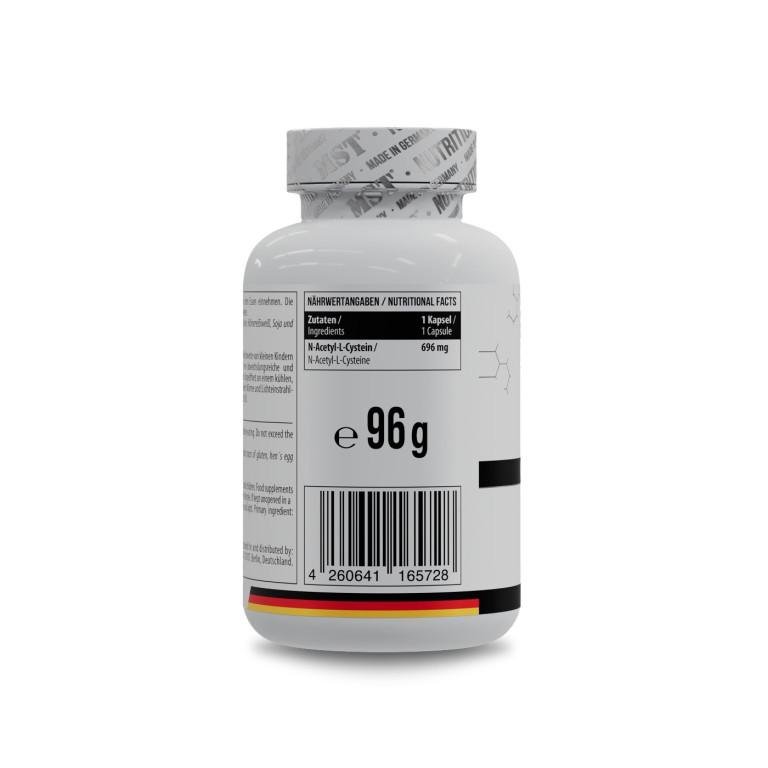 - MST, NAC N-Acetyl-L-Cysteine забезпечує високоякісну дозу N-ацетил-L-цистеїну (NAC) - стабільної форми амінокислоти L-цистеїну, яка відіграє важливу роль в антиоксидантному захисті, детоксикації печінки та здоров'я дихальних шляхів.