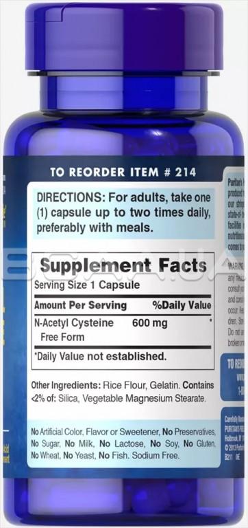 Опис Puritan's Pride, NAC N-Acetyl Cysteine 600 mg, Rapid Release Capsules