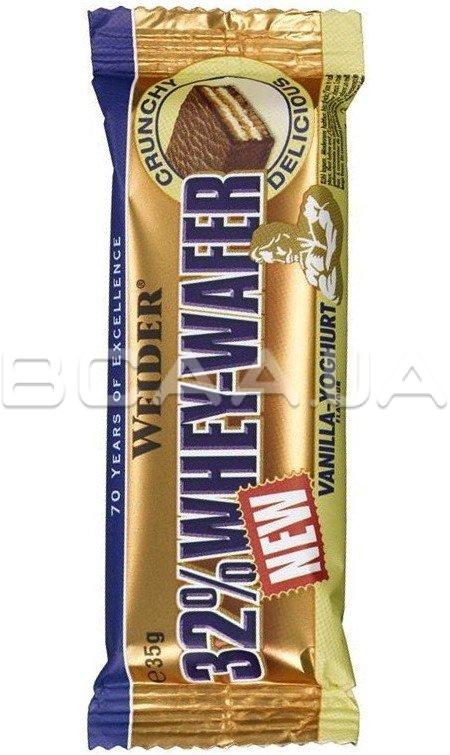 32% Whey Wafer - вафельний протеїновий батончик нового покоління від німецької компанії Weider, яка вже понад 70 років на ринку спортивного харчування. В основі якого багатокомпонентний протеїн вищого класу, складні вуглеводи, вітаміни та поживні речовини, що сприяють приросту мускулатури та підвищують якість тренувального процесу.