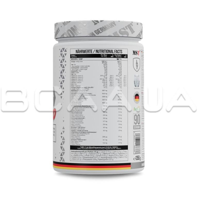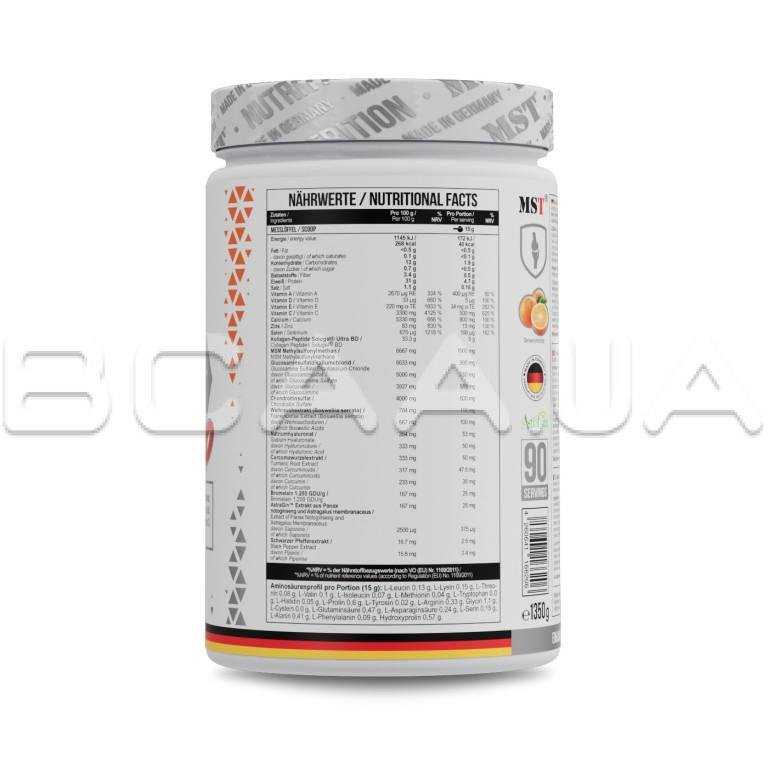 Гідролізований колаген, МСМ, глюкозамін, хондроїтин та вітаміни.