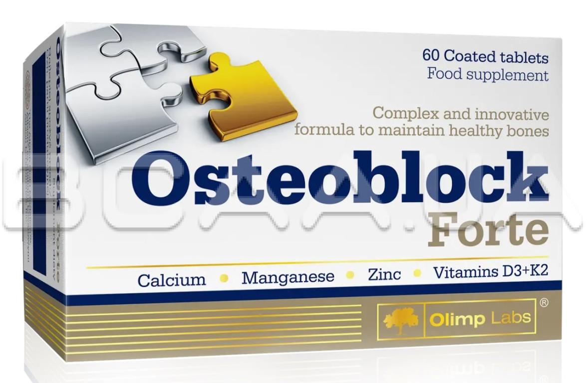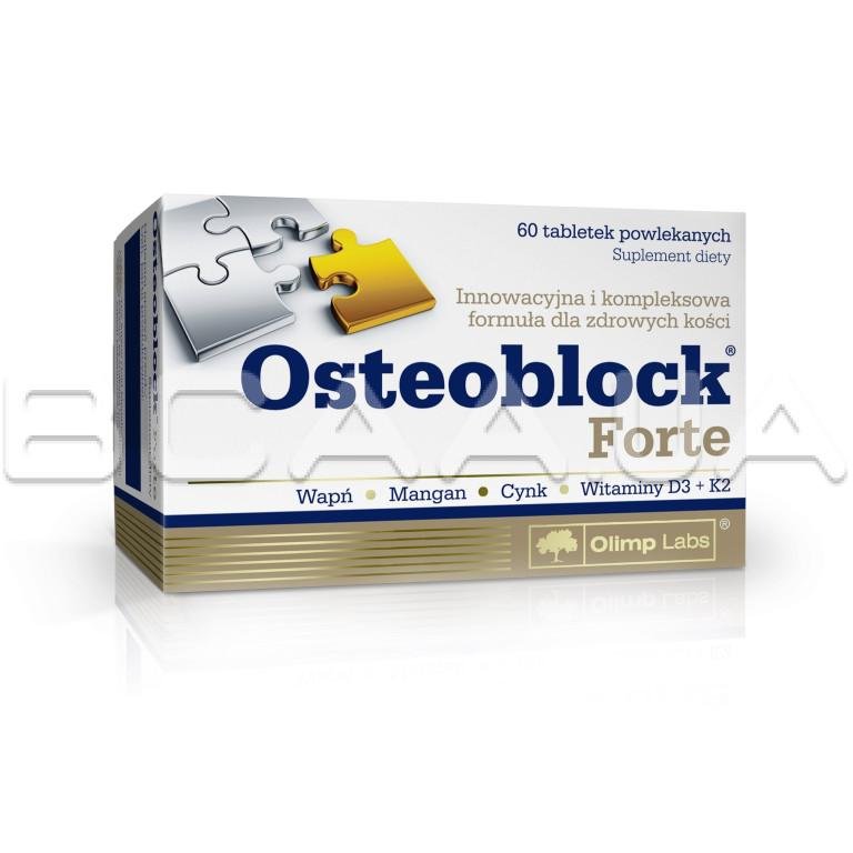 - Olimp Osteoblock Forte - це харчова добавка, яка містить комплекс біодоступних мінералів у вигляді амінокислоти хелат Albion® (кальцій, цинк, марганець) і вітаміну D3 і К2 у вигляді менахінону-7, що легко засвоюється, - компонент синергетичної дії, необхідної для підтримки здорових кісток.
