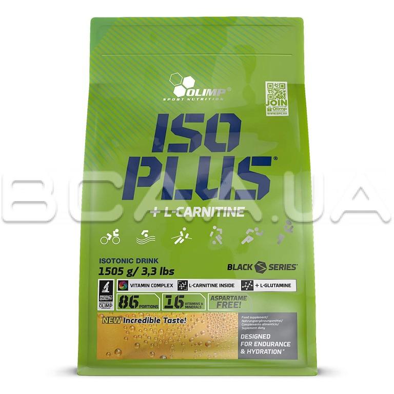Iso Plus - від Olimp Labs, ізотонічний напій з L-карнітином, L-глютаміном, вітамінами та мінералами, водночас ще й енергетик. Застосовується для покращення водного балансу, порушеного сильним потовиділенням під час тренування. Також відновлює резерви енергії (за допомогою вуглеводів), налагоджує сольовий баланс. Особливість напою полягає в тому, що концентрація корисних речовин у ньому, подібна до тієї, що в крові, це знижує час їх засвоєння. Випускається у порошковій формі, легко розчиняється та має кілька освіжаючих смаків.