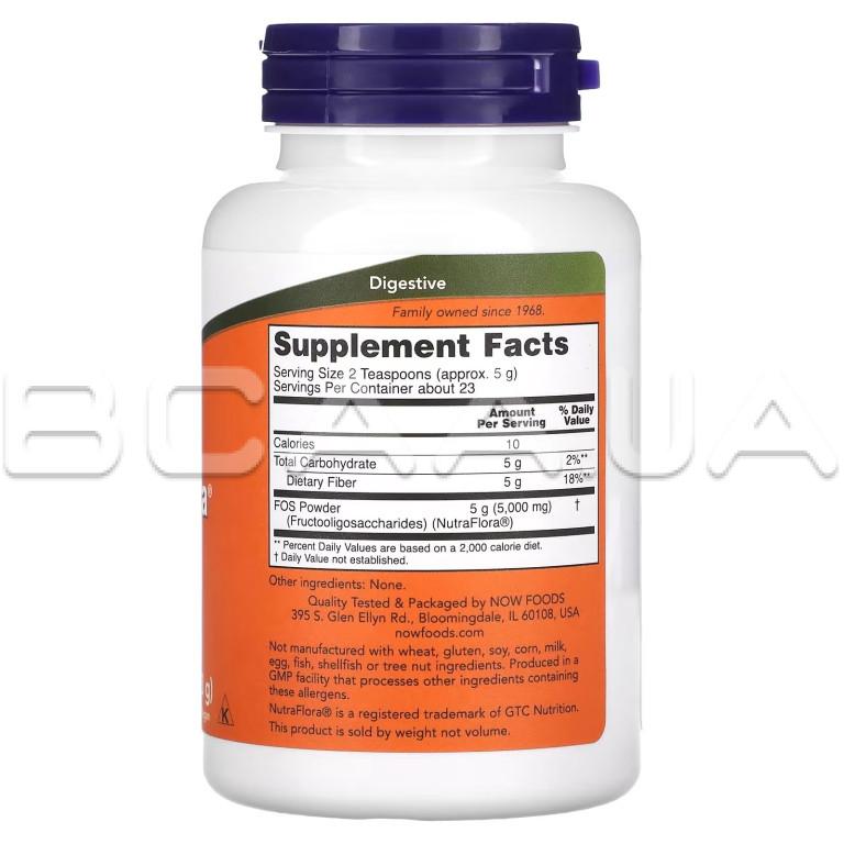 Опис Now Foods, NutraFlora FOS, Pure Powder