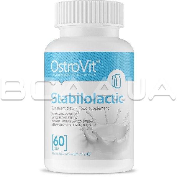 - OstroVit Stabilolactic - це харчова добавка в таблетках, що містять фермент лактази, що покращує перетравлювання лактози у людей, які відчувають труднощі з перетравлювання лактози.Непереносімость лактози (молочний цукор) є однією з найбільш поширених харчових непереносимостей. Вона може з'явитися за відсутності ферменту лактази в організмі. Цей фермент необхідний для перетравлення лактози в глюкозу і галактозу. Після вживання молока, а також інших продуктів, що містять молочний цукор, люди, які страждають непереносимістю лактози, мають неприємний дискомфорт від травної системи.