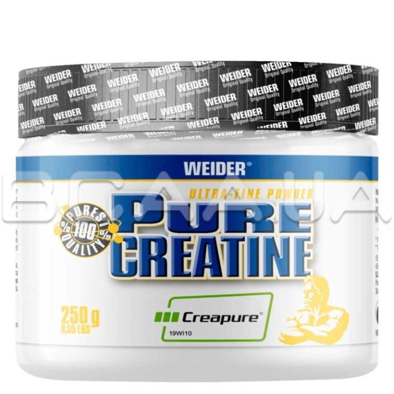 - Креатин - це ендогенна молекула, яка в основному міститься в м'язах, де вона відновлює аденозинтрифосфат (АТФ) і таким чином забезпечує додаткову енергію. Внаслідок цього було доведено, що щоденний прийом 3 г креатину підвищує фізичну працездатність під час швидкісних тренувань у рамках короткочасної інтенсивної фізичної активності. У добавці Weider, Pure Creatine використовується високоякісна фірмова сировина Creapure®, яка вважається абсолютним золотим стандартом з точки зору чистоти та якості.
