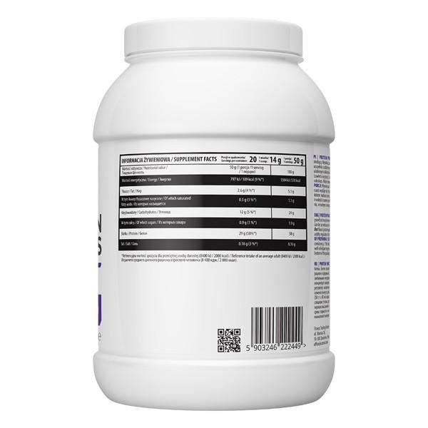 - Джерело білка в даному продукті - це концентрат сироваткового протеїну, збагачений яєчним та молочним протеїнами. Вівсянка - джерело дуже цінних складних вуглеводів, вітамінів групи В, цинку, заліза, магнію та селену, містить найвищий вміст харчових волокон серед злаків і, що найважливіше, переважає фракція розчинних волокон, корисних для нашого здоров'я. Високий вміст нерозчинної клітковини покращує роботу кишківника, дає відчуття ситості.