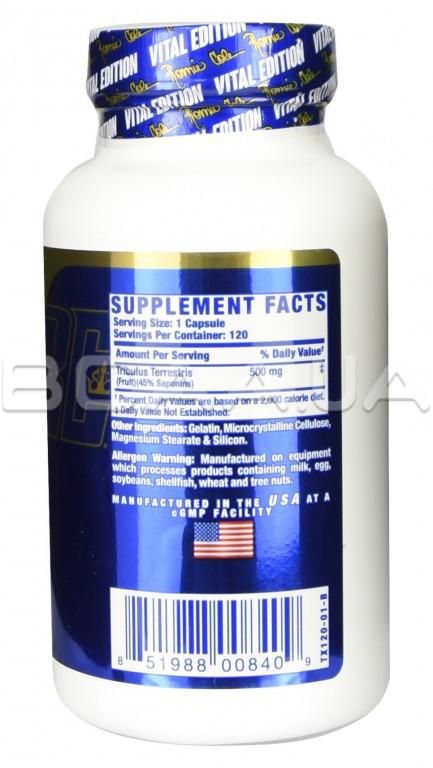 - Tribulus Terrestris (фрукти) (45% сапонінів): 500 мг