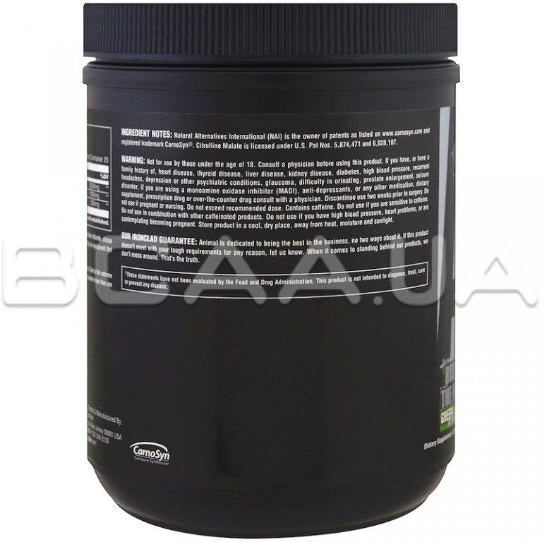 Зробити тренування більш інтенсивними та ефективними допоможе передтренувальний комплекс для чоловіків Animal Fury від популярної американської компанії Universal Nutrition. Інноваційний спортивний продукт виготовлений на основі кофеїну та групи амінокислот – бета-аланіну, тирозину та цитрулін малату. Завдяки цьому препарат підвищує витривалість під час тренувань, збільшуючи енергетичний запас.
