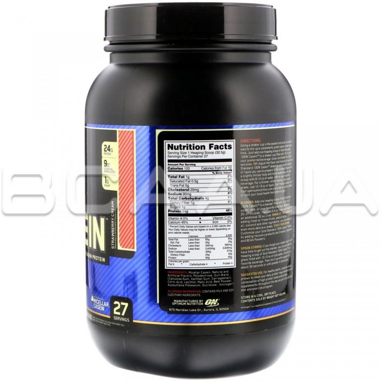 Казеїновий протеїн просто незамінний в період тривалих силових тренувань. Він дозволяє підтримувати ріст мускулатури, поповнити організм необхідними амінокислотами і дозволяє досягти бажаних результатів під час активних занять в залі. Багато атлетів віддають перевагу біодобавці 100% Casein Protein від Optimum Nutrition. Це високоякісний молочний білок, це можливо завдяки максимальному ступеню очищення під час виготовлення. Завдяки його тривалому засвоєнню, можна надовго наситити організм, запобігти процесам катаболізму і прискорити відновлення. Найчастіше препарат приймають на ніч, оскільки саме під час сну активізується регенерація м'язових волокон після інтенсивних фізичних навантажень.