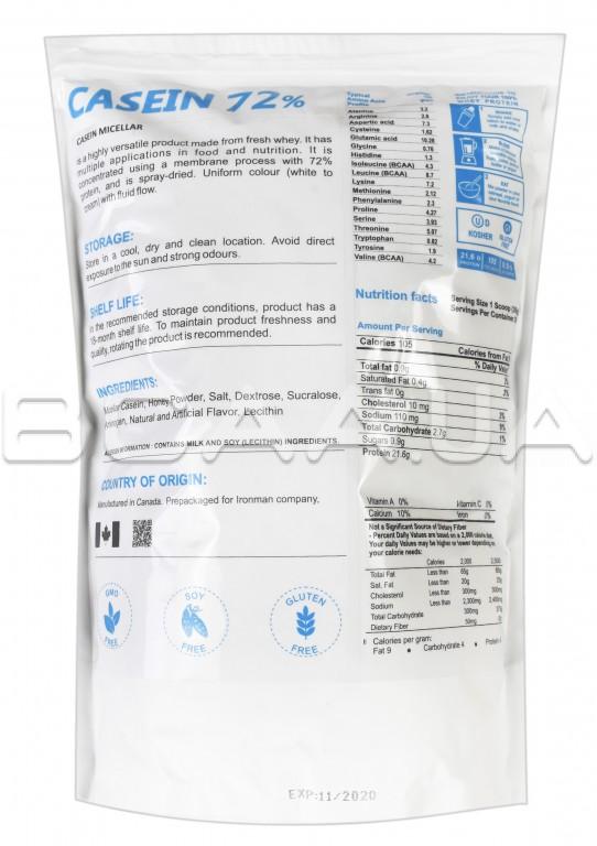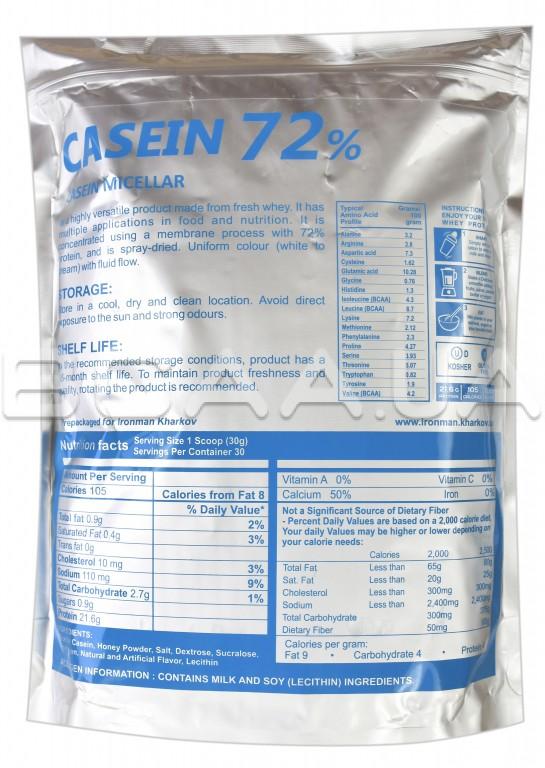 Casein Micellar 72% є високоякісною добавкою, яка поповнює необхідну кількість калорій і прискорює формування м'язових волокон. Особливістю казеїну є і те, що він довго засвоюється. Тому при його прийомі не відбувається руйнування м'язів і він запобігає катаболізму.