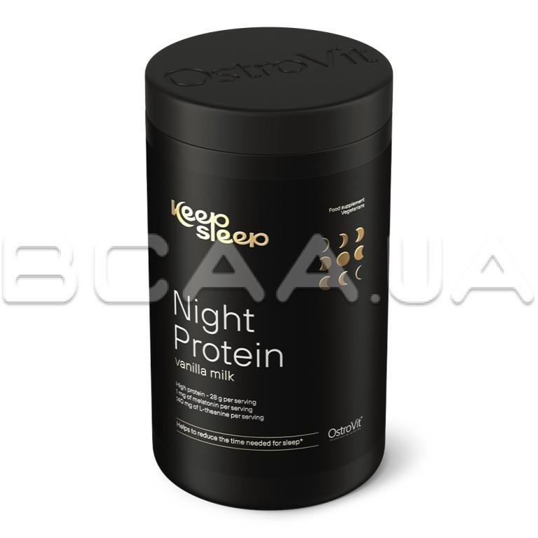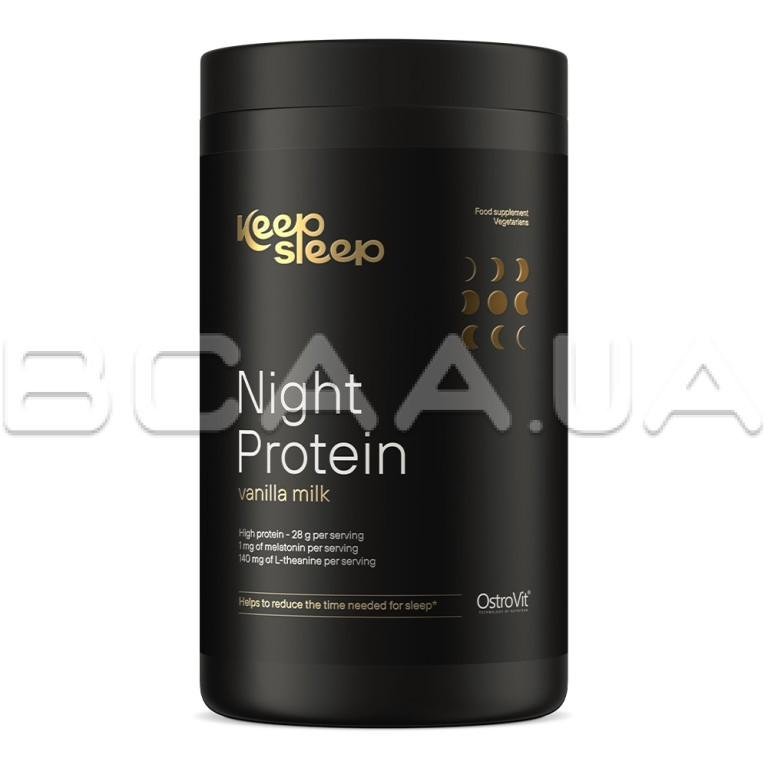 - Ostrovit, Keep Sleep, Night Protein – це високоякісна харчова добавка, джерело білка та цінних речовин, таких як мелатонін, міо-інозитол, L-теанін, магній та фермент лактазу. Препарат має приємний смак і випускається у зручній для використання формі порошку, створений для людей, яким важливо правильне відновлення та високу якість сну.