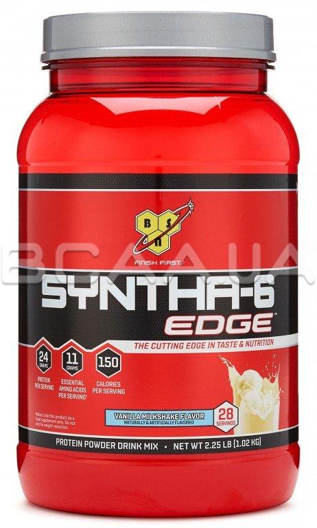 - SYNTHA-6 EDGE - це нова версія знаменитого протеїну SYNTHA-6 c зменшеною калорійністю, поліпшеним білковим профілем і смаковими якостями. Складається з унікальною харчової матриці, в яку увійшли білки з різною швидкістю вивільнення всіх поживних елементів. Концентрат і ізолят білкової сироватки пройшов повноцінний цикл мікрофільтрації із збагаченням пептидними фракціями ізоляту сиворотки. Також до складу добавки виробник включив яєчний протеїн, який славиться своєю максимальним ступенем засвоюваності, молочний ізолят, казеїнат кальцію, міцеллярні казеїни і казеїнати плюс глютамінові пептиди.