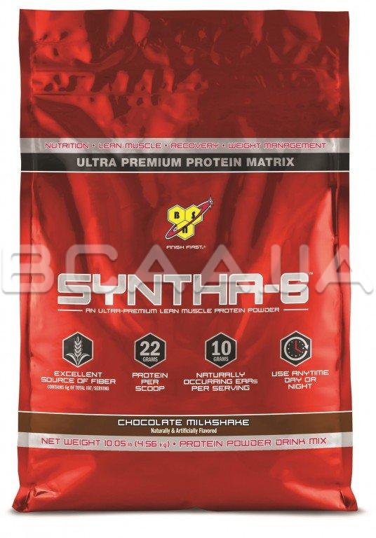 SYNTHA-6 BSN — Високоефективний засіб, який допоможе вам поповнити нестачу білка в раціоні, побудувати шикарне спортивне тіло, він може працювати протягом 8 годин. Важливо пам'ятати, що протеїн є харчовою добавкою і не може використовуватись як заміна раціону. Також він не буде настільки ефективним за відсутності регулярних тренувань.