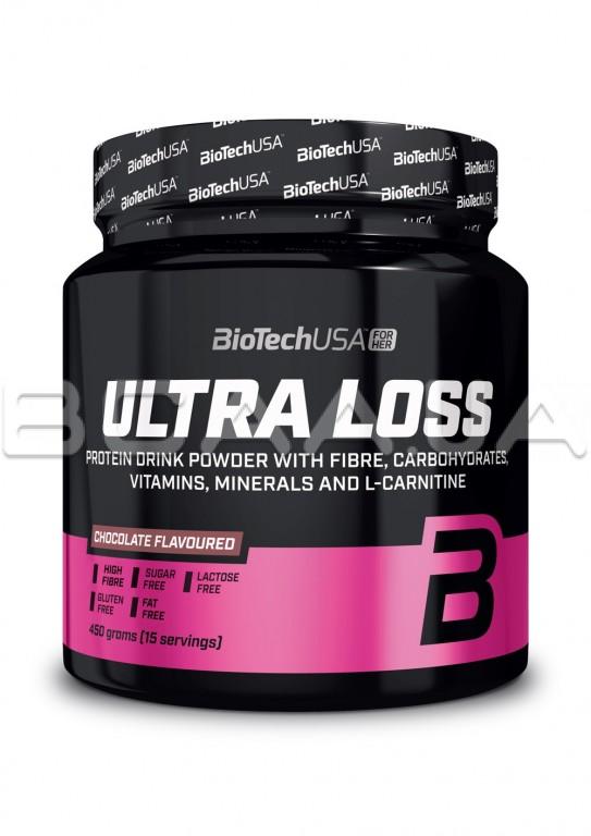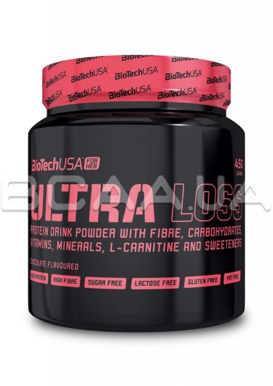 Ultra Loss Shake – це максимально збалансована протеїнова суміш для щоденного дієтичного харчування жінок. Відмінність від звичайного протеїну, який використовують спортсмени, перш за все у складі кожної порції Ultra Loss Shake 40 мг L-карнітину для поліпшення транспорту жирів і цілого комплексу вітамінів. А також, присутність 7 г клітковини на порцію. Відсутність цукру, позбавить вас від різких стрибків рівня інсуліну в крові, а дивовижний натуральний смак не залишить вас байдужими.