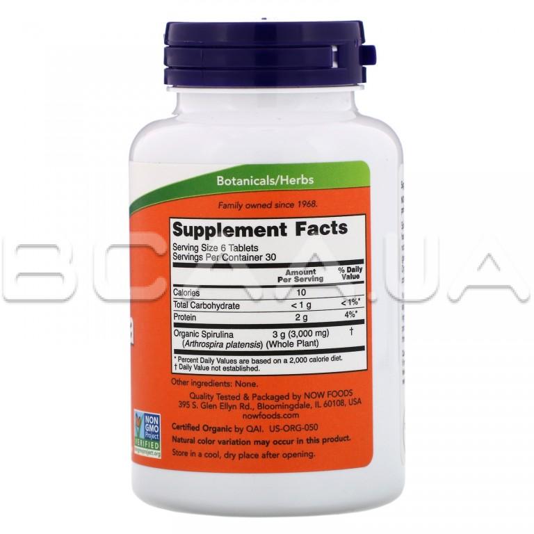 Опис Now Foods, Certified Organic Spirulina 500 mg, Tablets