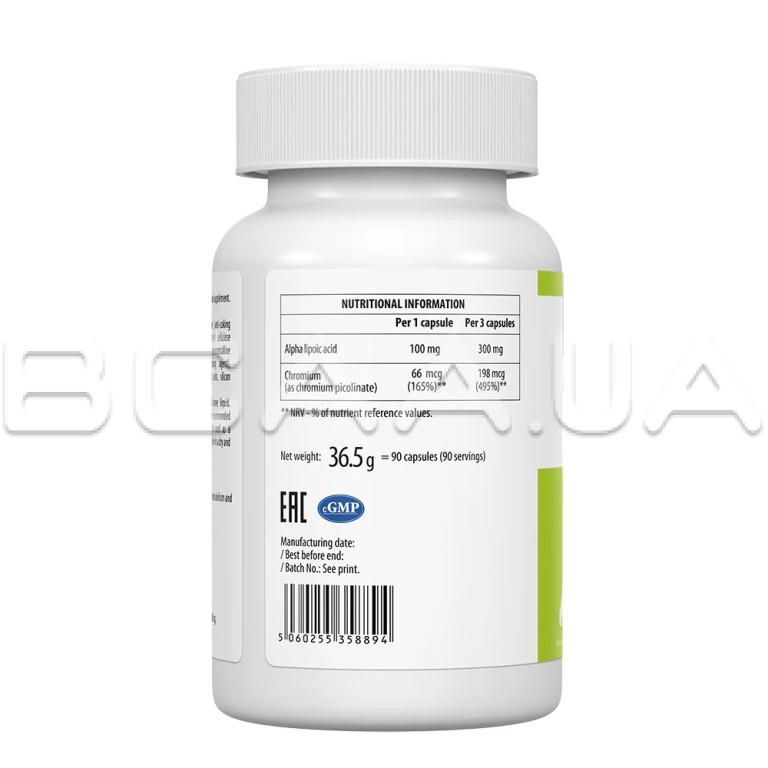 Альфа-ліпоєва кислота і хром у веганських капсулах.
