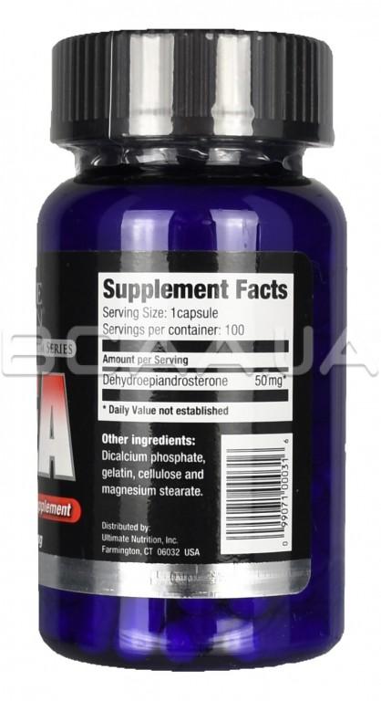 - Ultimate Nutrition DHEA - (дегідроепіандростерон) виробляється природним чином в наднирниках, потім метаболізує в андростенедіон, який перетворюється безпосередньо в тестостерон. Максимальні рівні DHEA досягаються в 20-25 років і потім поступово знижується. DHEA вживається, щоб збільшити виробництво тестостерону, IGF-1 (інсуліно-подібний фактор росту-1), для поліпшення дії імунної системи, розумової діяльності, лібідо.