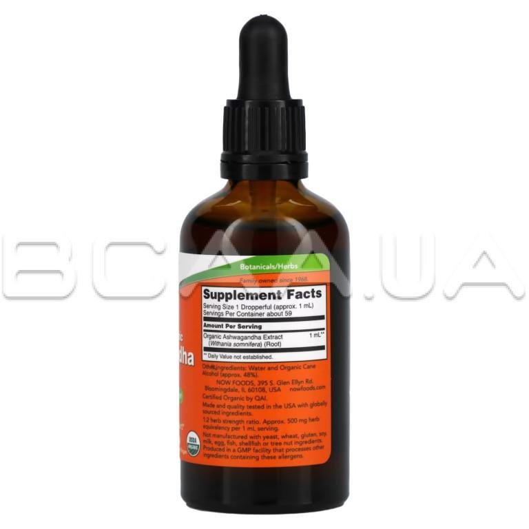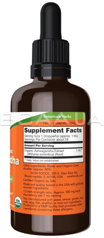 Now Foods, Certified Organic, Ashwagandha Extract, 59 ml