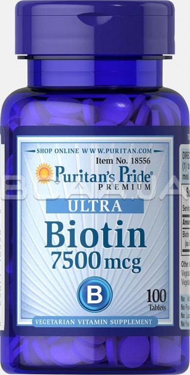 Puritan's Pride, Biotin 7500 mcg 100 Tablets — гарант краси та здоров'я вашого волосся, нігтів та шкіри.